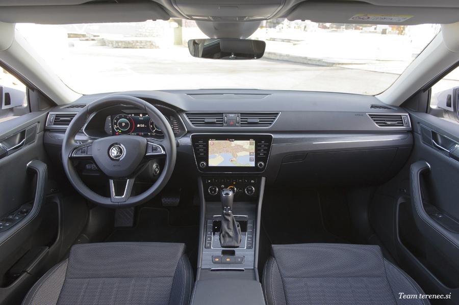 Notranjost je precej kakovostno izdelana in vse je postavljeno na svoje mesto, kot bi gledali postroj vojaške čete. Prostora za potnike je »malo morje« in vseh pet potnikov bo lahko v njem uživalo. Verjetno vsakega najbolj fascinira prostor na zadnji klopi, ki ga je resnično v izobilju. Dejstvo in prednost modela Superb Combi je ta prestižna prostornost, ki bo ravno pravšnja za velike družine ali zahtevnejše poslovne uporabnike. Vsa stranska vrata se odpirajo na široko in omogočajo lahkoten vstop v notranjost. V prostorni notranjosti najdemo veliko uporabnih odlagalnih mest.