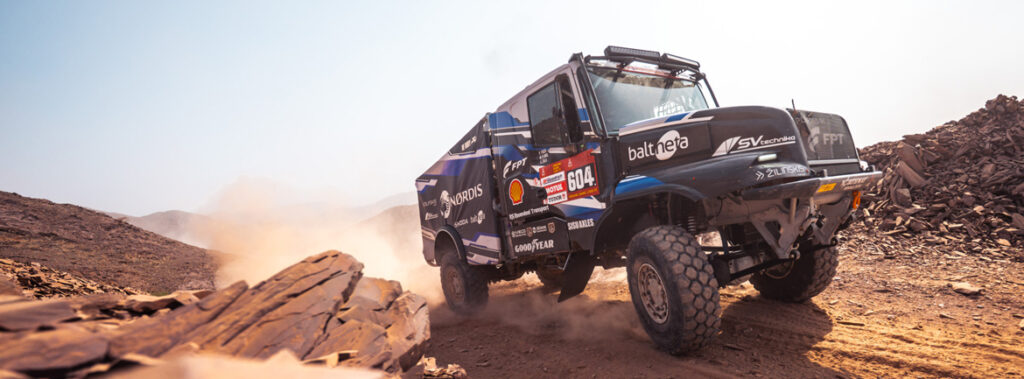 Skozi celotno tekmovanje sta se obe posadki zanašali na Goodyearjeve pnevmatike OFFROAD 375/90R22.5, ki so zasnovane za optimalen oprijem, visoko robustnost in odpornost na toploto v ekstremnih terenskih razmerah. V kombinaciji z Goodyearovim sistemom za nadzor tlaka v pnevmatikah (TPMS) je bila omogočena neprekinjena kontrola tlaka in temperature v realnem času, kar je prispevalo k večjemu nadzoru nad vozilom, optimizirani zmogljivosti in večjemu udobju posadk na zahtevnih etapah.