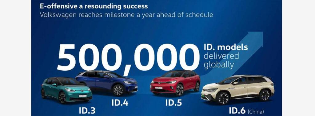 Volkswagen pri elektrifikaciji svojega voznega parka ostaja na dobri poti. Podjetje je eno leto pred načrtovanim rokom doseglo še en mejnik pri uresničevanju strategije ACCELERATE, s katero postaja ponudnik brezemisijskih mobilnostnih storitev, ki temeljijo na programski opremi: od predaje prvega vozila ID.31 kupcu oktobra 2020 je Volkswagen po vsem svetu prodal 500.000 avtomobilov družine ID. – kljub še vedno zaostrenim razmeram v preskrbi.