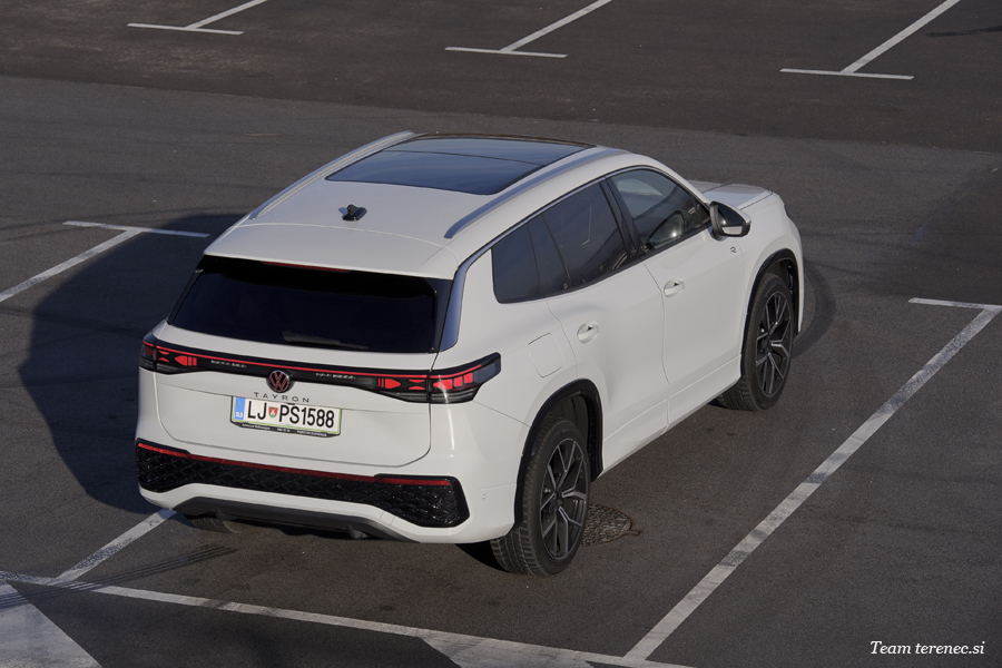 Volkswagen Tayron sodi v segment D športnih terencev, ki v dolžino meri 4,7 metra, s medosno razdaljo 2,79 metra in prostornim prtljažnim delom, ki meri do 1.905 litrov. Notranjost je ergonomsko zasnovana v skladu z Volkswagnovo oblikovalsko filozofijo ter vključujedigitalni prikazovalnik pred voznikom in na sredini velik zaslon na dotik, ki deluje tekoče in ima ostro sliko. Mehanske gumbe lahko srečamo le na volanu in dva na sredinski konzoli med sedežema.Lahko bi rekli, da je Tayron precej tehnično napreden športni terenec, ki ponuja večji nabor motorjev in si lahko vsak kupec izbere sebi pravega. V notranjosti ima res precej prostora s petimi sedeži ali za doplačilo še dodatnih dveh, ki prideta prav za večje družine, če imajo manjše otroke, da se lahko skobacajo zadaj. Navzven je sodoben, eleganten s sodobnimi linijami.Nivoji opreme so Life, 4ALL, Elegance, R-Line in 4JOY. Vstopna cena se prične pri 43.661 evrih in po ceniku konča pri 57.391 evrih. A potrebno se je zavedati, da je potrebno iz seznama dodatne opreme še vedno kaj dodati, da imamo bolj zadovoljivo opremljeno vozilo. Na testnega Tayrona, ki je izhajal iz najvišjega nivoja opreme, so dodali še za 7.063 evrov dodatne opreme (sedemsedežno izvedbo, IQ.Light HD-matrične žaromete, paket asistenčnih sistemov IQ.Drive, progresivno krmiljenje, navigacijski sistem Discover Pro Max, protihrupno izolacijo za stranska stekla, usnjeni paket Varenna z ergoActive Plus, vlečna kljuka in asistenco Trailer Assist).