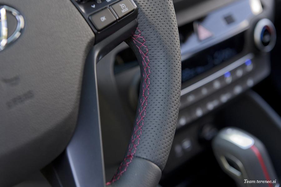 - športni volanski obroč oblečen v perforirano usnje z dodatki v grafitno sivi in črno lakirani barvi ter oznako N